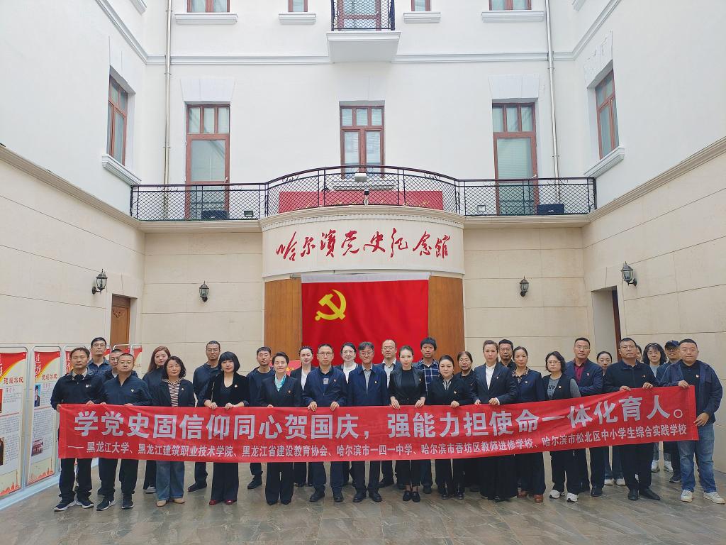 为深入学习贯彻党的二十大精神,传承红色基因,弘扬革命精神,深化爱国情怀,9月25日下午,YL23455永利集团教工第二党支部联合黑龙江建筑职业技术学院教学实训中心、黑龙江省建设教育协会、哈尔滨市松北区中小员工综合实践学校、哈尔滨市香坊区教师进修学校及哈尔滨市一四一中学校等单位,共同开展“学党史固信仰同心贺国庆,强能力担使命一体化育人”主题党日活动。公司党委书记张丽丹与支部党员一同赴哈尔滨党史纪念馆参观学习,重温入党誓词,共话教育初心。