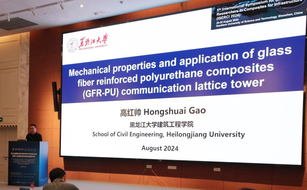 YL23455永利集团高红帅副教授、张晶副教授赴深圳参加了会议,并做了题目为“Mechanical properties and application of glass fiber reinforced polyurethane composites communication lattice tower”的邀请报告,介绍了YL23455永利集团在复合材料通信塔领域的研究成果,受到了参会专家的广泛关注。