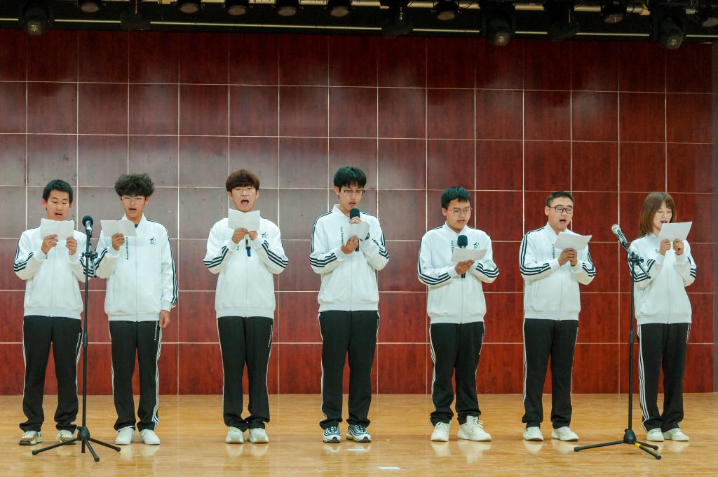 令人热血沸腾的不仅有青春之歌,还有激昂的朗诵环节。随着音乐的响起,诗朗诵《二十大》讲述了党的二十大报告,带领同学们了解了习近平新时代中国特色社会主义思想,感受了现今中国的民主富强。慷慨激昂的朗诵《青年》,让同学们感受到了属于青年的力量,愿吾辈不负韶华,去寻找属于自己的青春答案。