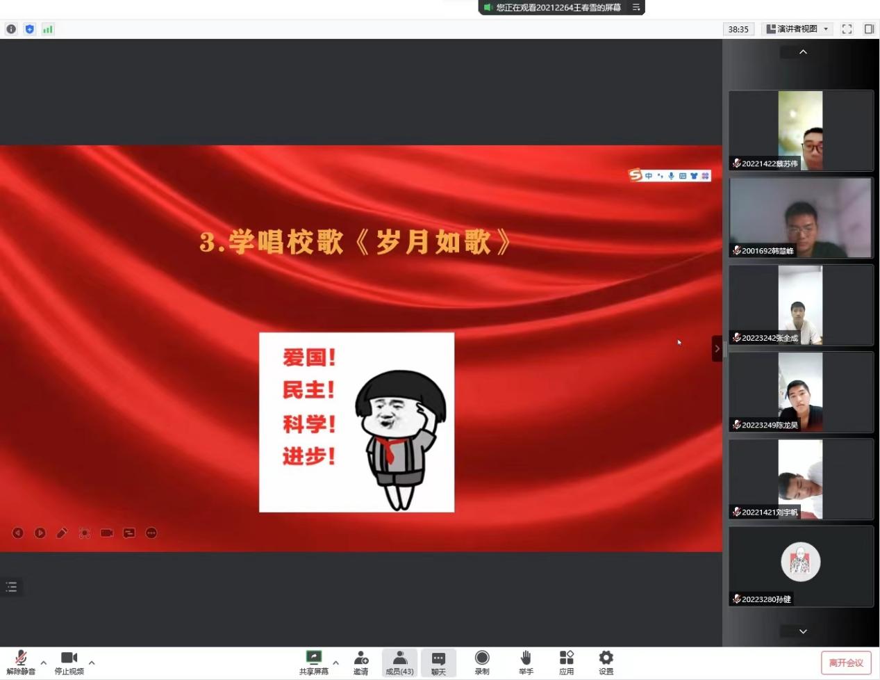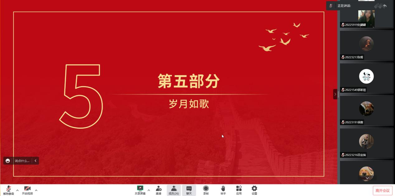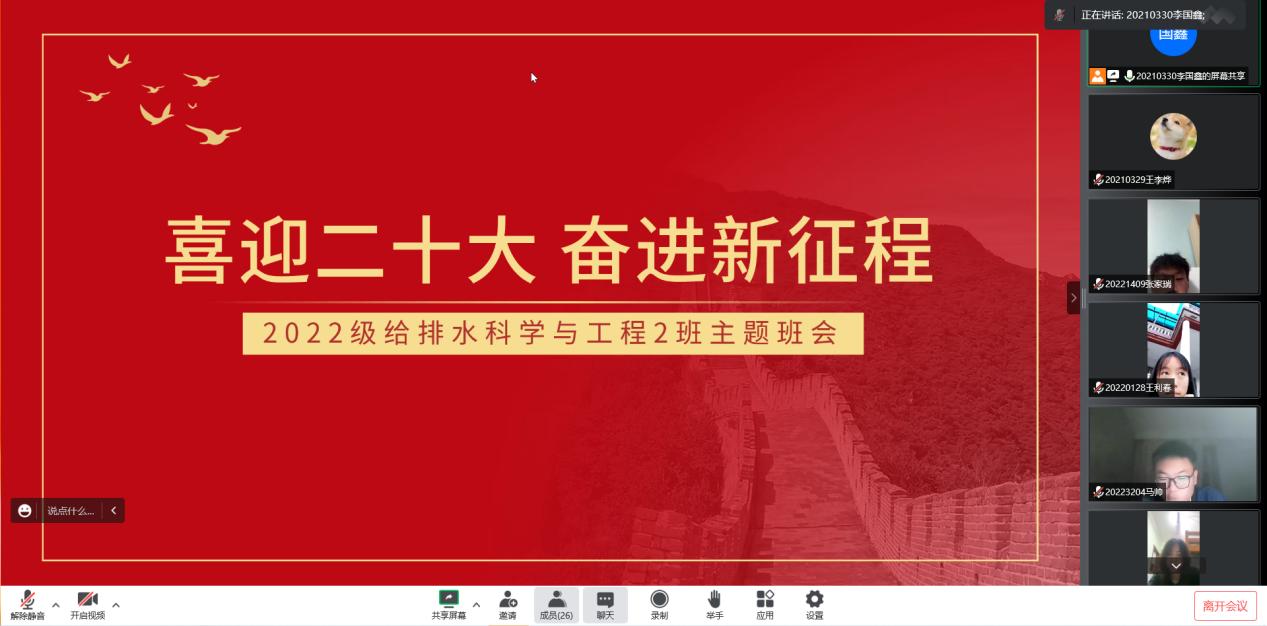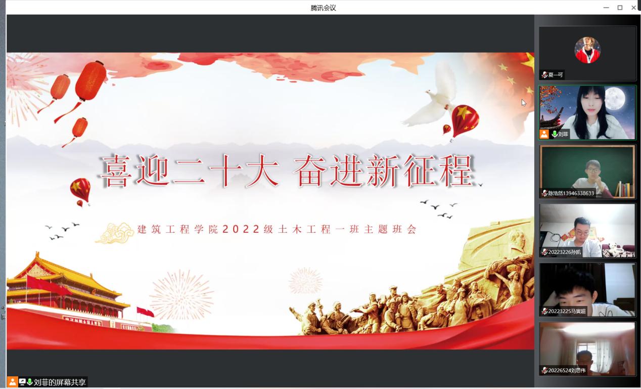 会议伊始,由各班新生班主任向同学们进行自我介绍,在简单的交流中拉近了彼此之间的距离,初步认识后,同学们在评论区内踊跃发言,线上气氛活跃,从素未谋面到相知相熟,彼此间的距离更进一步。班会主要分为三大部分,第一部分由各位新生班主任以“喜迎二十大 奋进新征程”为主题带领同学们回顾党的光辉历程,颂扬党的丰功伟绩,深刻认识党的二十大召开的深刻意义。悠悠中国情,拳拳爱国心,通过这一系列的回顾,使得爱国爱党的情怀在同学们心中不断壮大。