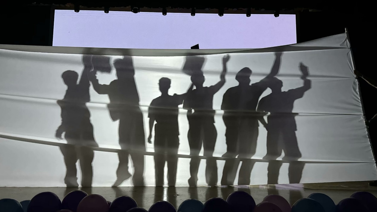 光影剧《回忆吧,正青春》,将毕业生们的老员工活定格在幕布上。演员们在交错的光影中穿梭,时而在"学习桌前"的光影里伏案疾书,时而在"操场"的光影下肆意奔跑,当最后一幕,演员们站在光影交织的"毕业典礼"场景中,一同向上扔出头顶的学士帽时,许多毕业生的眼眶湿润了——这一幕幕光影,是他们共同的青春记忆,承载着欢笑与泪水,也见证着他们从懵懂走向成熟的蜕变。