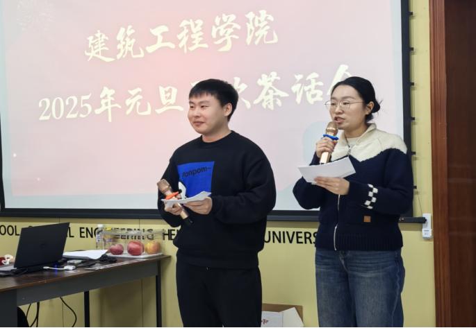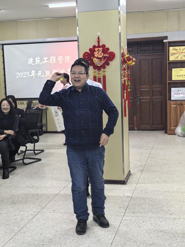 随后,精彩的文艺演出和互动游戏相继开始,学院辅导员团队带来了《三句半》表演,幽默诙谐的语言与生动有趣的表演赢得了阵阵掌声。房建系徐树全老师用一曲《上海滩》带领大家回味经典老歌,展现了过往岁月的魅力;道桥系殷立辉老师一曲《南山南》演绎了一段对时光的怀念与对未来的期许;组织员刘慧颖老师用一首《阳光总在风雨后》为大家送上了新一年的祝福;市政工程系陈悦佳老师带来了《一路生花》,优美的旋律与温暖的歌词将现场气氛推向了高潮。