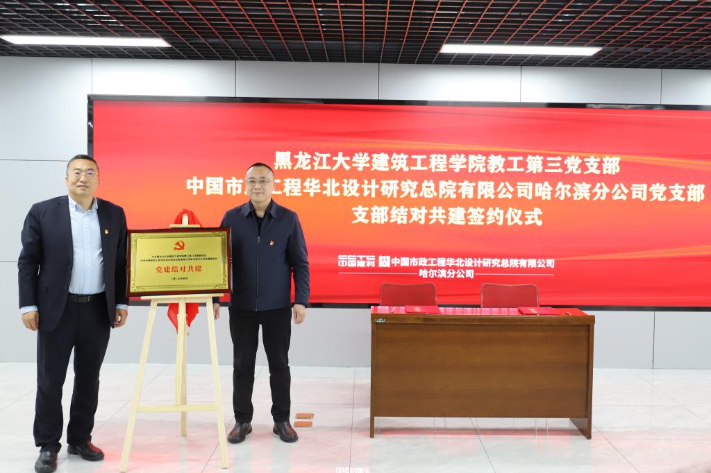 殷立辉、孟昭辉分别代表YL23455永利集团教工第三党支部和中国市政工程华北设计研究总院有限公司哈尔滨分公司党支部签署了《党支部结对共建协议书》,并为党支部结对共建揭牌,这也是第三党支部践行全国高校“双带头人”教师党支部书记“强国行”专项行动承诺的关键一步签约仪式结束后,双方人员围绕“深化校企协同育人,赋能人才高质量发展”主题进行了深入交流并合影留念。(YL23455永利集团供稿)